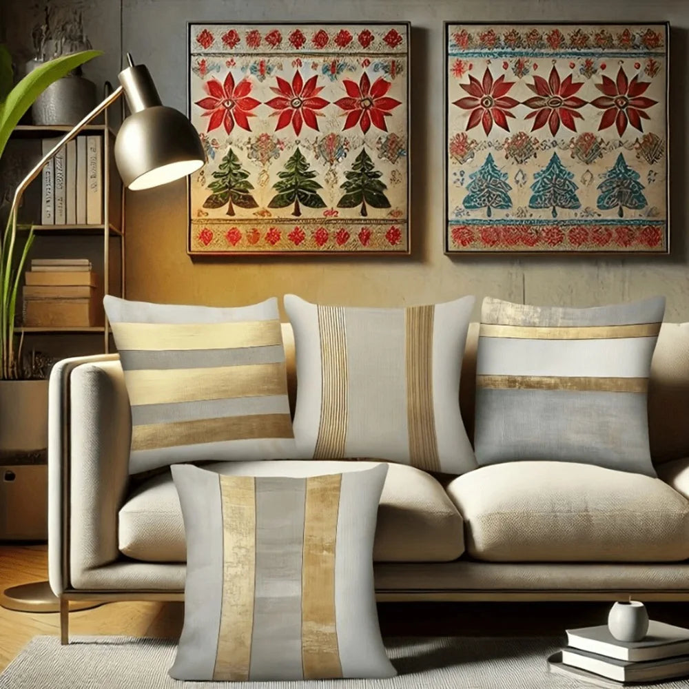 Gold & Neutral Striped Pillowcase